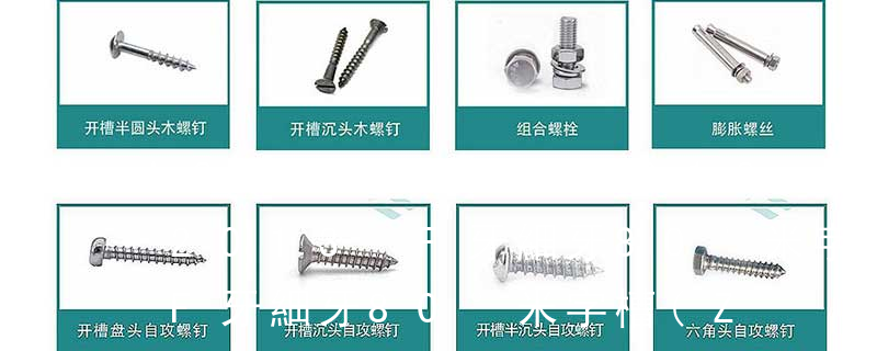 1.機螺釘 2.自攻螺釘 3.鉆尾螺釘 4.墻板釘 5.纖維板釘 6.木螺釘7.六角木螺釘 8.不脫出螺釘 9.組合螺釘 10.微型螺釘 11.家具螺釘 12.電子螺釘頭型:1.六角頭(hexagon head) 2.六角頭法蘭面(hexagon head with flange) 3. (鐵板牙自攻螺絲) B-2: Plastic Tapping Screw. (塑膠用,自攻螺絲) C: Wooden Screw : 木工螺絲 D: Drywall Screw :水泥墻螺絲 E: Self Drilling Screws鉆尾螺絲(不銹鋼鉆尾螺絲,復(fù)合材料鉆尾螺絲) F:膨脹螺絲,四片膨脹螺絲又