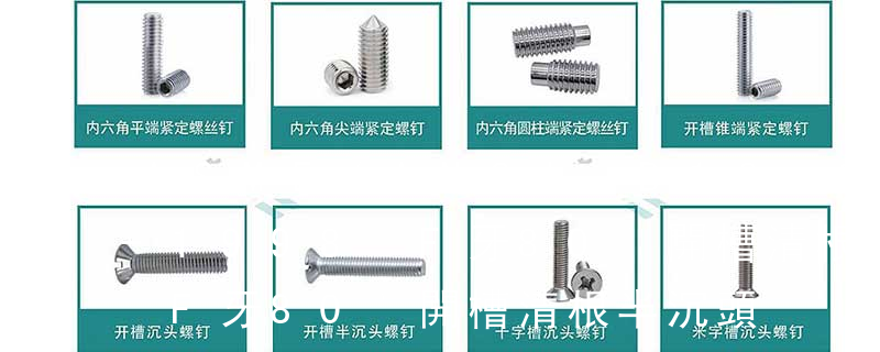 (鐵板牙自攻螺絲) B-2: Plastic Tapping Screw. (塑膠用,自攻螺絲) C: Wooden Screw : 木工螺絲 D: Drywall Screw :水泥墻螺絲 E: Self Drilling Screws鉆尾螺絲(不銹鋼鉆尾螺絲,復(fù)合材料鉆尾螺絲) F:膨脹螺絲,四片膨脹螺絲又 1)開槽普通螺釘多用于較小零件的連接。它有盤頭螺釘、圓柱頭螺釘、半沉頭螺釘和沉頭螺釘。盤頭螺釘和圓柱頭螺釘?shù)尼旑^強(qiáng)度較高,瑁在普通的部件連接上;半沉頭螺釘?shù)念^部呈弧形,安裝后它的頂端略外露,且美觀光滑,一般用于儀器或精密機(jī)械